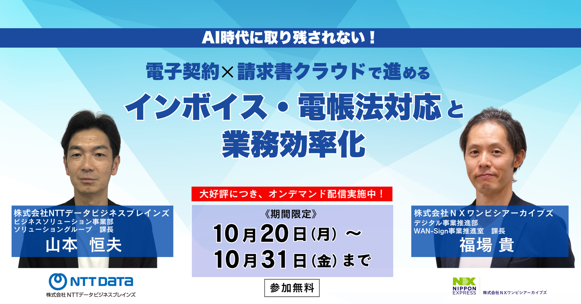 ①NTTデータビジネスブレインズ:「紙も電子も一元管理!請求書クラウドで実現するインボイス・電帳法対応」